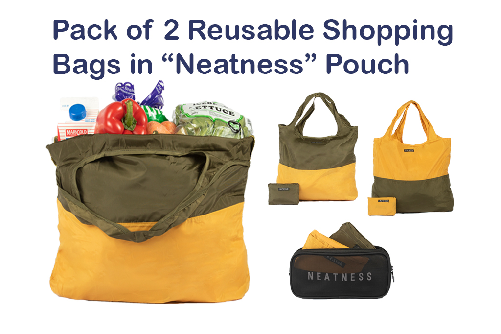 Pack of 2 Reusable Grocery Shopping Bags in a Neatness Pouch, SHOP NOW